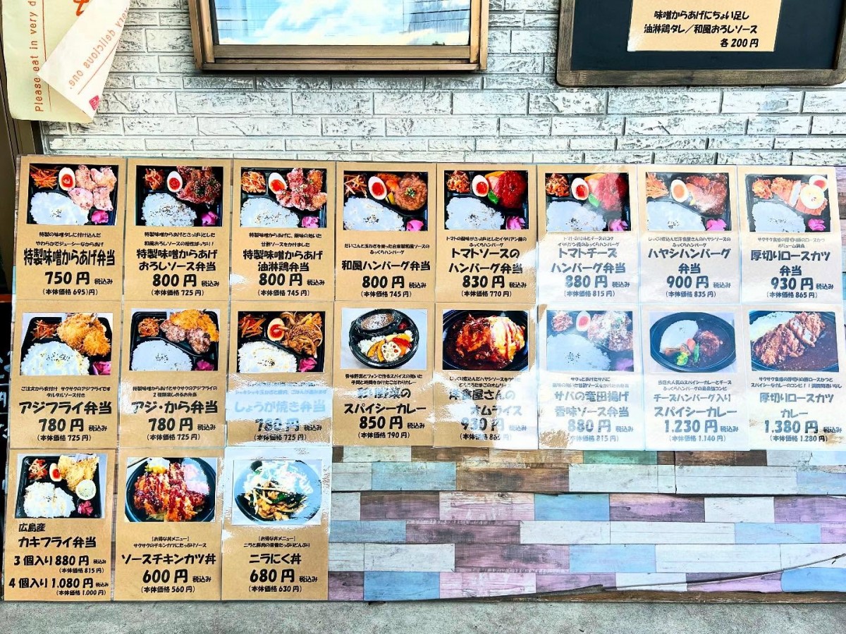 | サービスやメニュー | ●特製味噌からあげ弁当 ¥750 ●特製味噌からあげおろしソース弁当 ¥800 ●あじ・から弁当 ¥780 ●アジフライ弁当 ¥780 ●彩り野菜のスパイシーカレー ¥850 ●洋食屋さんのオムライス ¥930 ●広島産カキフライ弁当 3個入¥880/4個入¥1,080 ●特製味噌からあげ油淋鶏弁当 ¥800 ●しょうが焼き弁当 ¥780 ●和風ハンバーグ弁当 ¥800 ●ハヤシハンバーグ弁当 ¥900 ●トマトソースのハンバーグ弁当 ¥830 ●トマトチーズハンバーク弁当 ¥880 ●サバの竜田揚げ香味ソース弁当 ¥880 (2025年2月よりの価格です) 手作りのお惣菜のご用意もございます。 詳細はX、Instagramをご覧ください。 ※表記金額は全て税込みです。 |